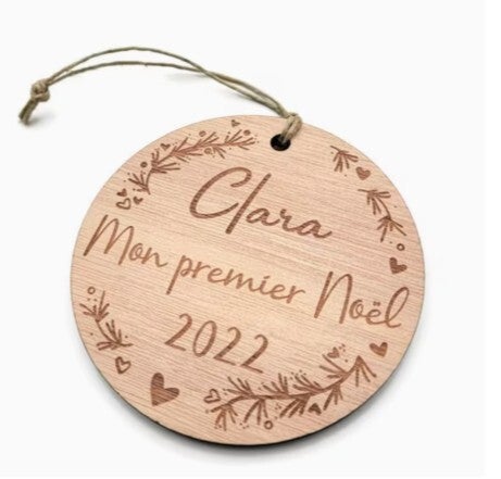 Apportez une touche unique et pleine de magie à votre sapin avec notre boule de Noël personnalisée en bois, gravée au laser avec soin dans notre atelier QTcréations 💛